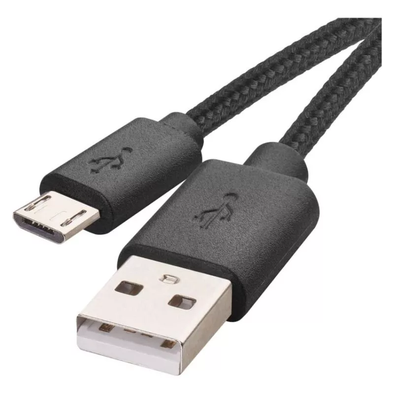 adatátviteli sebesség: 480 Mbit/s (High Speed)|anyag: PVC + textil|csatlakozók: A dugó – mikro B dugó|értékesítési csomagolás: 1 db, kis doboz|használat: töltés/adat|hossz: 2 m|maximális áram: 2 A|maximális teljesítmény: 10 W|szín: fekete|USB verzió: 2.0