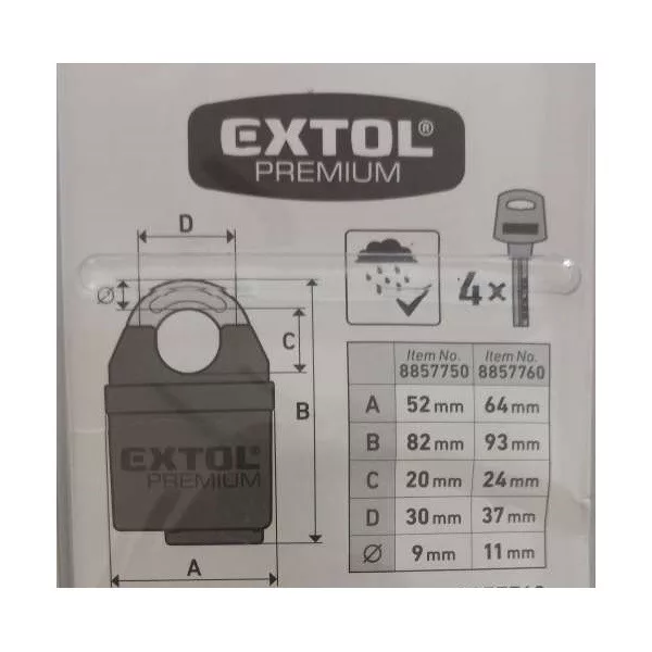 biztonsági lakat, levágás elleni védelemmel, festett, vízálló, 4db kulcs; 60mm